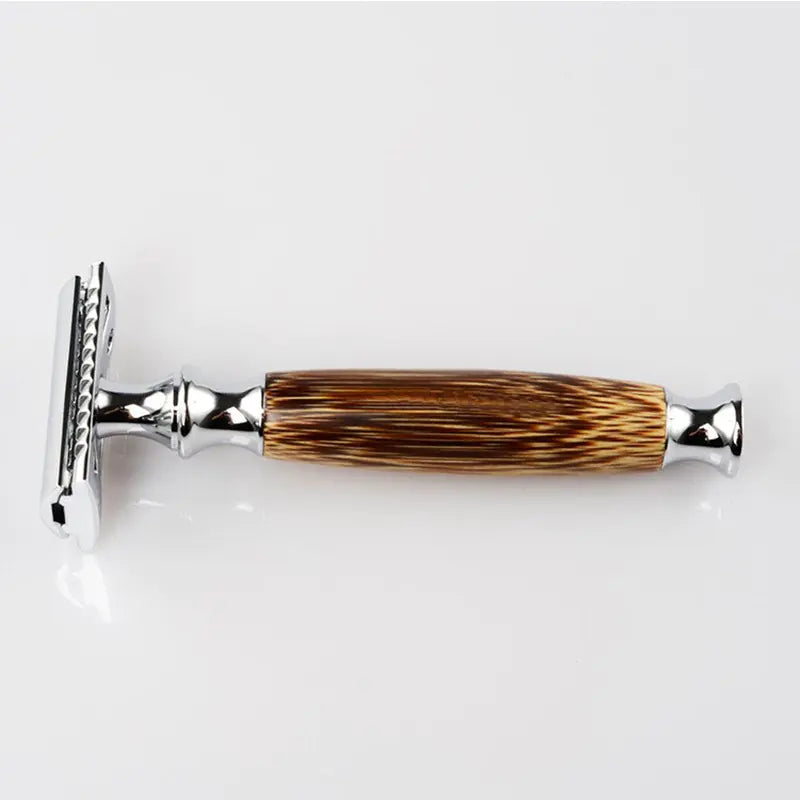 Crafted using high-quality natural bamboo, brass, and a zinc alloy knife head, this razor denotes not only sturdy construction but also a commitment to ecological stewardship. By choosing our bamboo safety razor, you actively contribute to reducing plastic waste, making this an excellent choice for the environmentally aware gentleman.